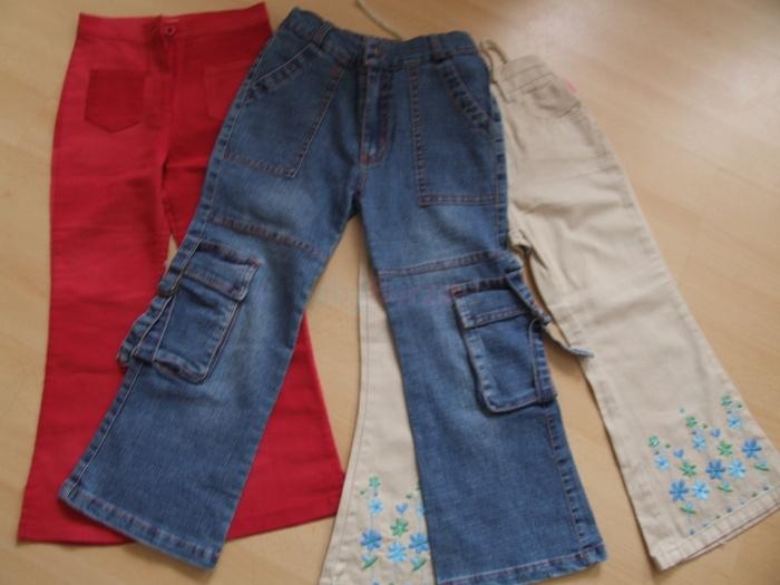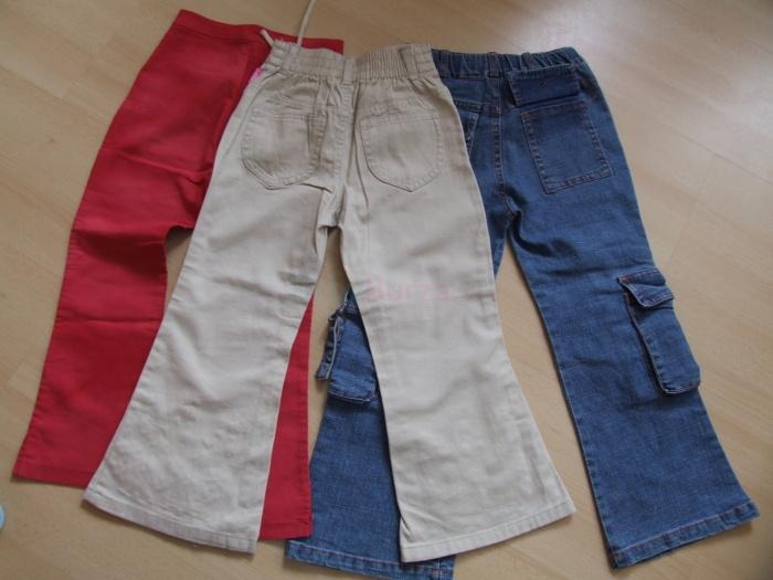 Predám dievčenské nohavice, veľkosť 116. Červené nohavice so zapínaním na gombík, trošku elastické. Modré rifle s veľkými vreckami, dole rozšírené. Béžové bavlnené, takmer nenosené,dole s našitými trblietkami.Cena za všetky spolu, ale predám aj jednotlivo. Cena + poštovné al. osobný odber v KE.