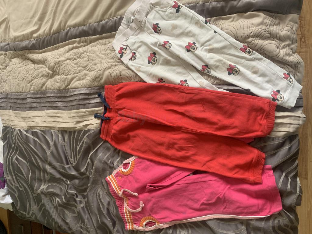 Cervene teplaky 110/116, na kolene zosite. Ruzove s Minnie 122 osuchane na kolenach, tmavo ruzove pisana velkost 4. Cena je za vsetky spolu. Jednotlivo za 3e kus